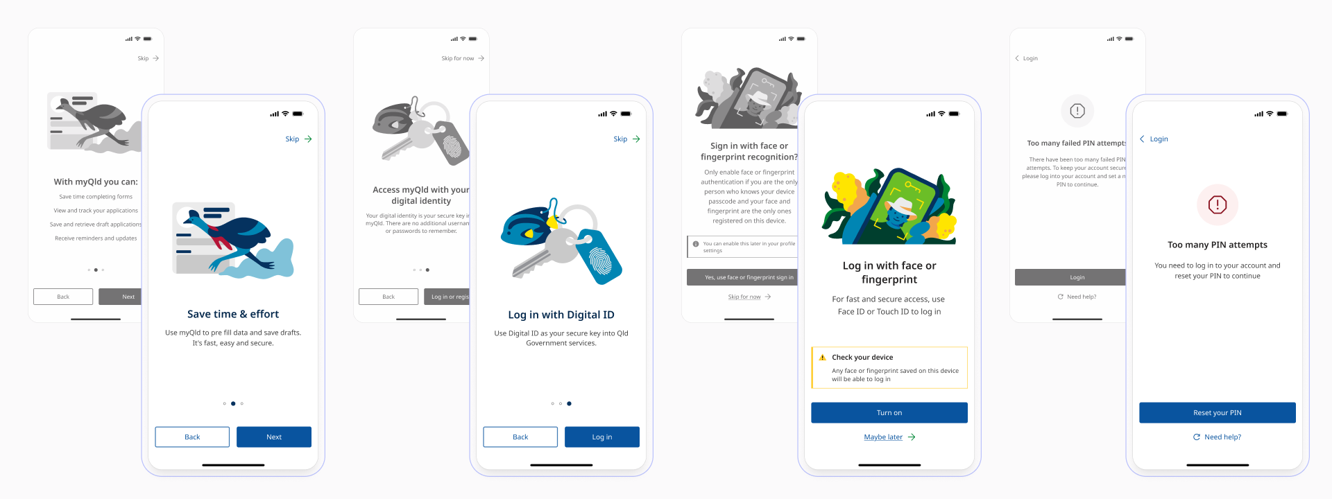 Before federated login was in the pipeline, I designed a secure multi-provider authentication system that let customers switch between Queensland Digital Identity and myID. The challenge? Balancing security requirements with accessibility for people sharing devices or working with limited digital literacy. I mapped scenarios, tested edge cases, and designed a solution that aimed to serve diverse user needs.